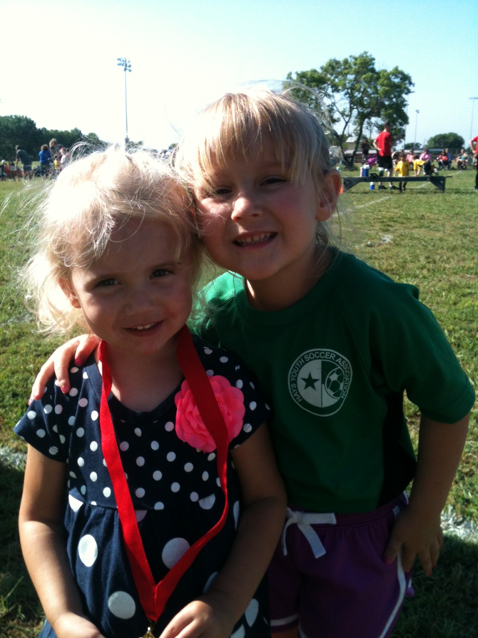 When the last game was over, Haley took the field and ran through the tunnel of parents with her big sister Avery and gave high fives to everyone. All the kids on the team received a medal…and another round of high fives started. Avery noticed that her sister was sad because she didn’t get one. She said, “Don’t worry Haley. We can share mine!” And she took off her medal and placed it on her sister’s neck. I don’t think Avery ever scored a goal this season but I can tell you, seeing her place that medal on her sister made me more proud than any goal ever could. I know that it not only brought a smile to my face and her sister’s but I know it brought a smile to the Lord’s face too. The Bible says in Hebrews 13:16 “Do not neglect doing good and sharing, for with such sacrifices God is pleased.” I love the love those girls have for one another. I love the tender, compassionate and caring hearts that the Lord has given them. I pray that the Lord will always protect them and guard their hearts. And I pray that I may demonstrate the same love and compassion for others.