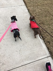 Marta and I have been walking in the neighborhood several evenings each week for a couple of months now. I have really enjoyed the time and the talks we have shared. I look forward to going on our walks together. I know that I am not the only one who looks forward to them because every day after supper, our two dachshunds start dancing around every time they suspect that one of us may be about to put on our tennis shoes. Those pups are just so eager and excited that even on days where one of us is too tired to go for a walk the other one will still go on a short walk just to take Briggs and Princess (a name like Princess is what you get when let granddaughters name your pets).