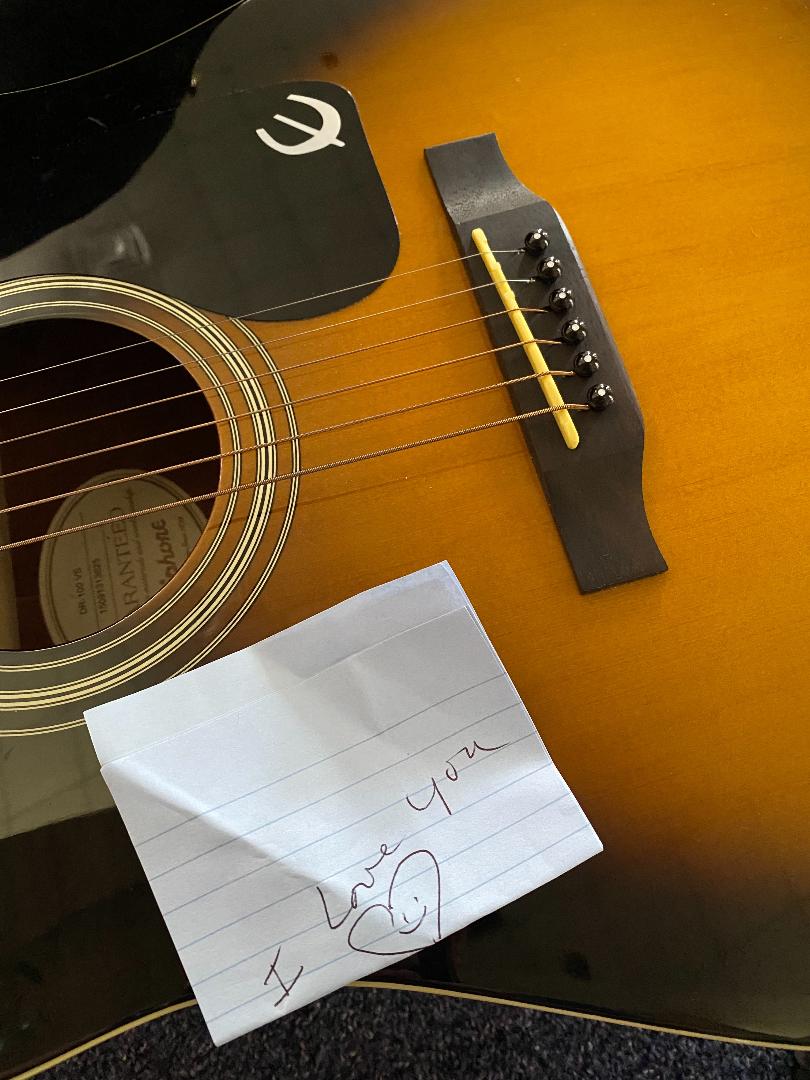 I try to practice playing the guitar almost every day. I even have an inexpensive one I keep at work so that I can squeeze in some practice time during lunch. Several years ago, my wife Marta left me a note inside the case that says, “I love you.” She even put a smiley face on it. I love seeing that note every time I open that guitar case. That note was written so I would always have a good and sweet reminder of the love she has for me. When I saw that note the other day, I was also reminded of a Bible verse in John’s gospel. In John 20:31, the Apostle John writes:
