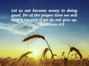 Galatians 6:9 Let’s not become discouraged in doing good, for in due time we will reap, if we do not become weary.