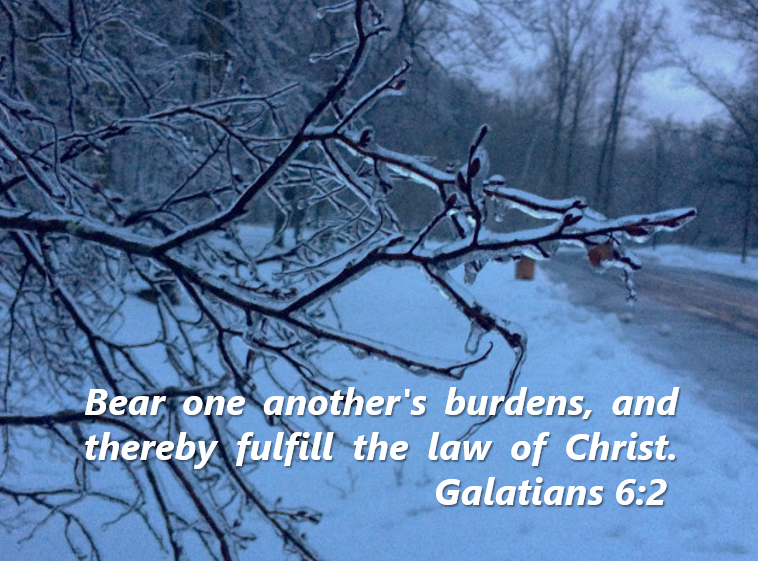 As I reflected on all the tree limbs which were broken by ice storm, I thought about how far too often, we are weighted down by the stresses and struggles of life. We keep trying to hold up, we keep trying to bear the weight, but it seems to build and build and eventually, it can become too much. And when it does, we break in some form or fashion. It may be physical, mental, emotional, or spiritual…or a combination thereof. And as we start to assess the situation, it seems overwhelming. We wonder how we will ever get things sorted out. We become so focused on the hassle in front of us, that we forget about the help around us. And far too often we face all our troubles and all our headaches all by ourselves. It doesn’t have to be that way.